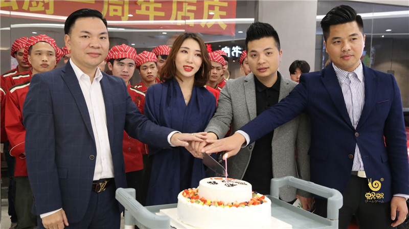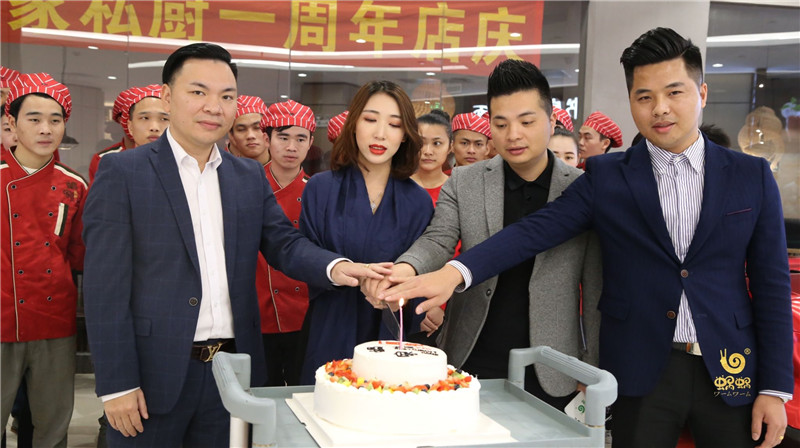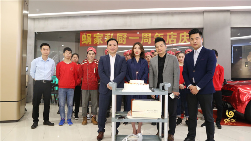 蝸家私廚滿一周歲啦,為此舉辦蝸家一周年慶典,黛普公司的高層與蝸家私廚的員工出席了此次盛典!方曉丹股東、黃俊龍股東,黃碧鋒股東分別講述對蝸家私廚來年的殷切期盼,贏得了員工們的熱烈掌聲,三位股東還與蝸家私廚的員工分享了象征蝸家私廚一周年的蛋糕!