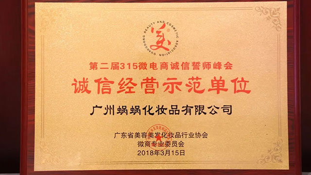 隨后,小越越榮獲微商專業委員會榮譽主席,蝸蝸榮獲誠信經營示范單位獎項,由峰會主辦方代表親自頒獎,此等殊榮引來各界欽羨的目光